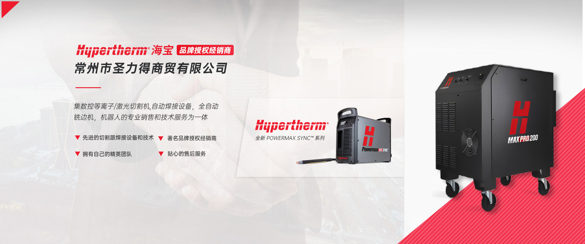 常州市圣力得商贸有限公司是一家集数控等离子/激光切割机,自动焊接设备,全自动铣边机,机器人的专业销售和技术服务为一体的公司。本公司是世界品牌Hypertherm(美国海宝)公司的授权经销商?! 」臼且恢Ъ际跷榷?、服务优良、富有朝气的精英团队。公司致力于将国外先进的切割跟焊接设备和技术介绍给中国的机器制造商和终端用户,并为用户提供品质的产品和完善的售后服务?! 」局饕硪韵虏罚骸 ?.美国海宝Hypertherm等离子机用电源,手持电源,原装易损件及备件  2.韩国赛拉科(CERACO)铣边机,南京顶瑞自动焊接小车  3.迈誓坦(MicroStep),日本田中(TANAKA),武汉法利莱(FARLEY-LASERLAB),江苏博大品牌等离子切割机,激光切割机及维修配件。  4.美国海宝,美国飞马特,凯尔贝等原装正品易损件及配件  5.激光切割机,等离子切割机,火焰切割机升级,安装与调试及技术升级改造项目  6.机器人焊/切生产线  热忱欢迎广大用户前来询价及洽谈。